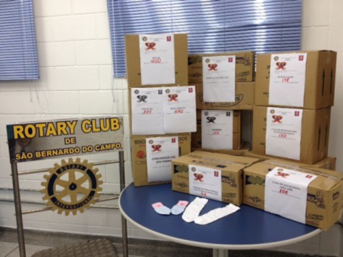 Em reunião festiva de 24 de junho, o Rotary Clube de São Bernardo do Campo, distrito 4420, deu início à distribuição de meias arrecadadas na campanha PÉ QUENTE 2015, comandada pela companheira Malu Giglioli. O pimeiro lote, com 220 pares foi entregue à Associação São Luiz, na pessoa de sua Presidente, Natalina OlgaGuazzelli. No todo arrecadaram-se 2214 pares que estão sendo destinados a dez entidades.