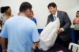 Durante a visita do governador Claudio Takata, 300 crianças foram presenteadas com sacolinhas de Natal doadas pelo CAMP SBC e rotarianos.