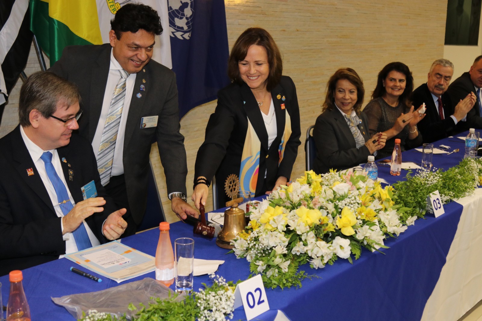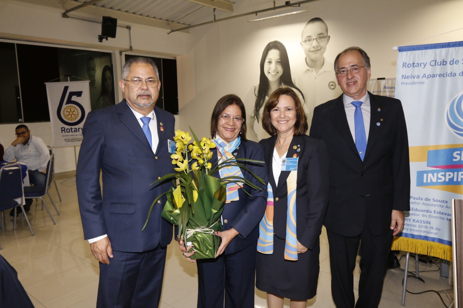 Durante a cerimonial João Luiz Mencarelli Pereira - presidente nos anos rotários 2016/2017 e 2017/2018 - transmitiu a posse para Neiva Ap. da Silva Capitanio, que ocupará a presidência do Club em 2018/2019.