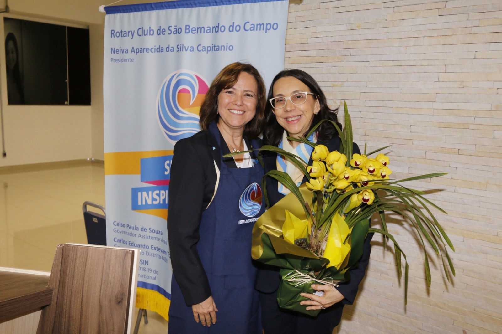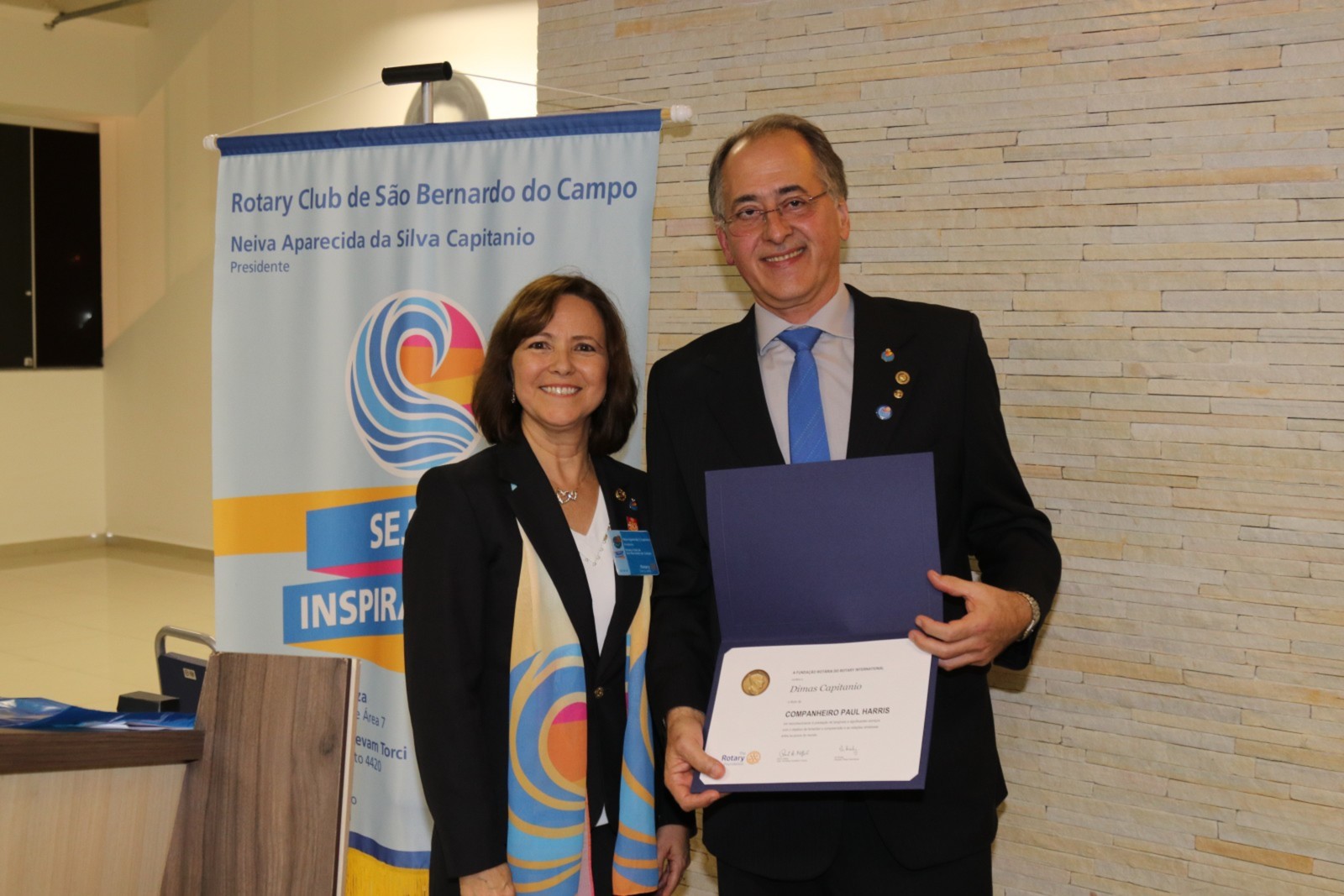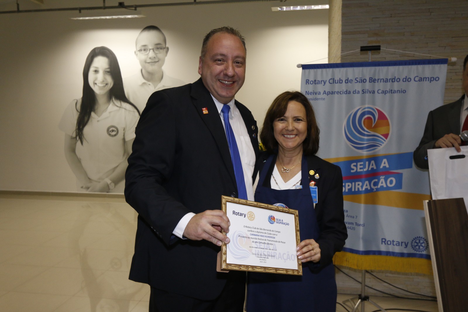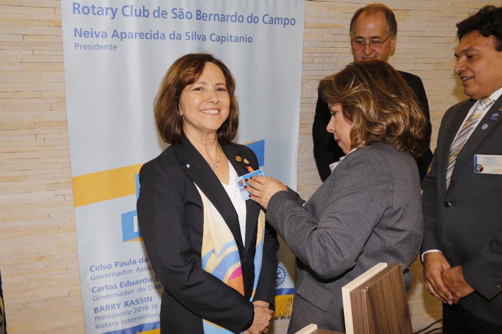 Dando prosseguimento à cerimônia, a então presidente Neiva conduziu a posse e boas-vindas de dois novos rotarianos de São Bernardo do Campo, o casal Mario Gregorio Morassi e Solange Lodi Morassi. Em seguida, foi entregue um título Paul Harris para o associado Dimas Capitanio.