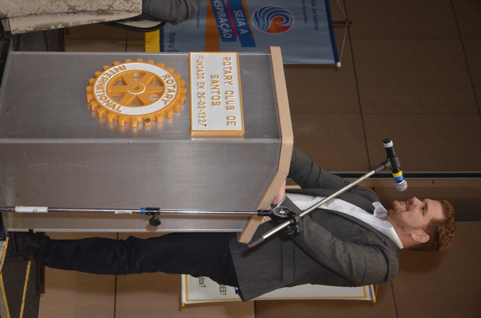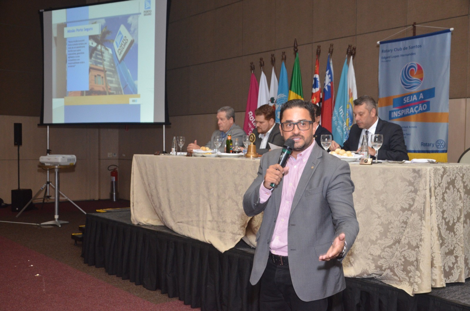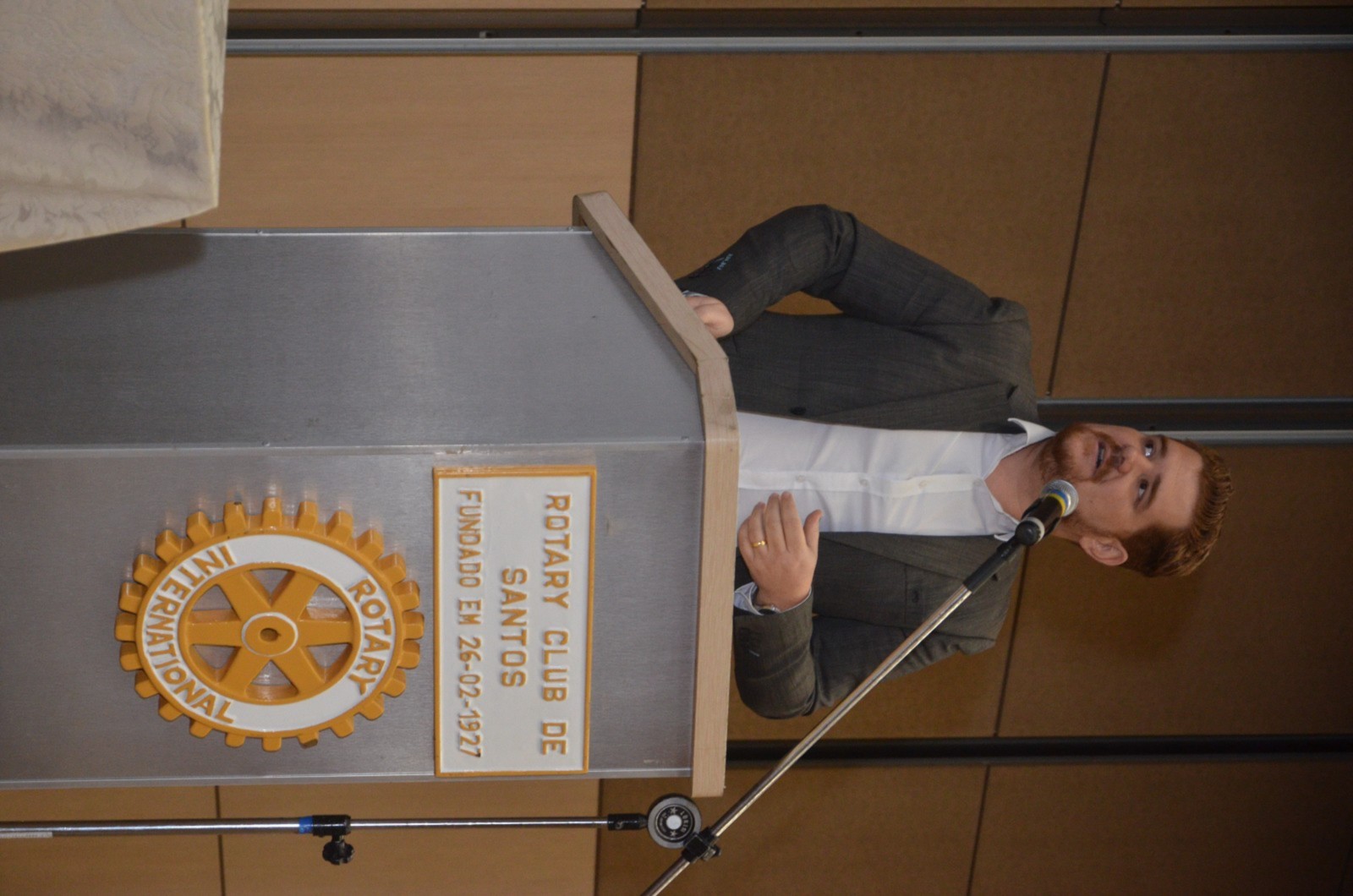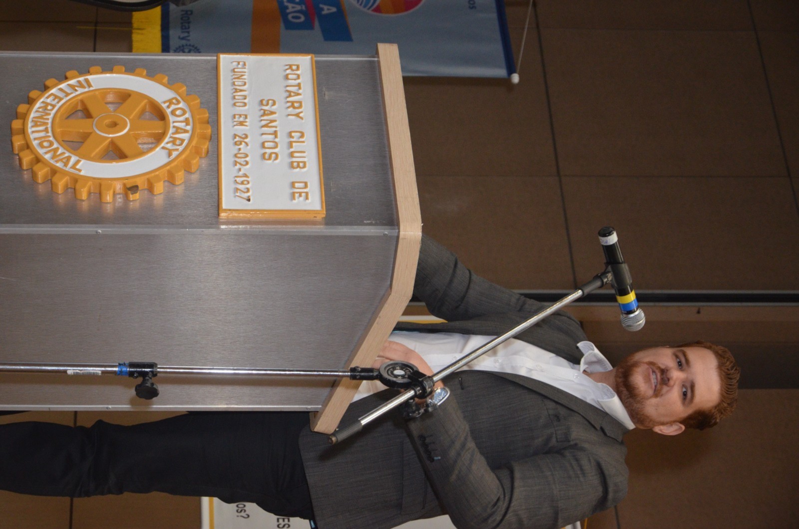 Logo após apresentação, o Companheiro Rodrigo Chacao, do Rotary Club de Praia Grande, falou no Minuto Rotário sobre o Seguro Solidário.