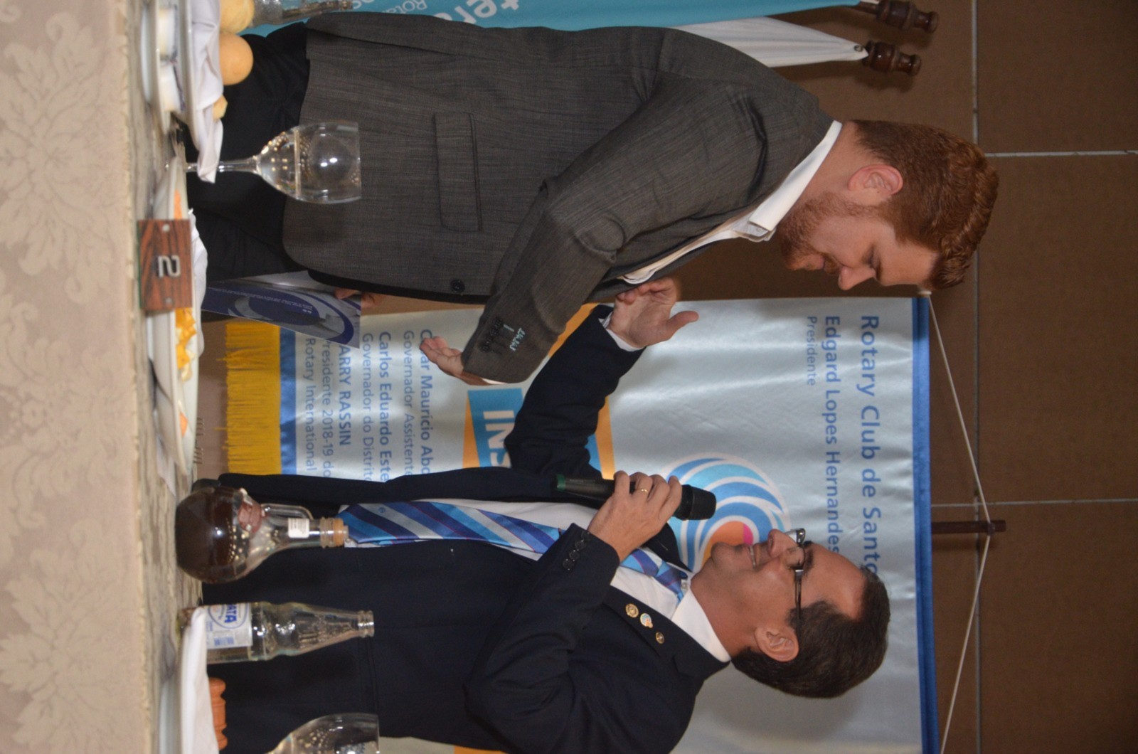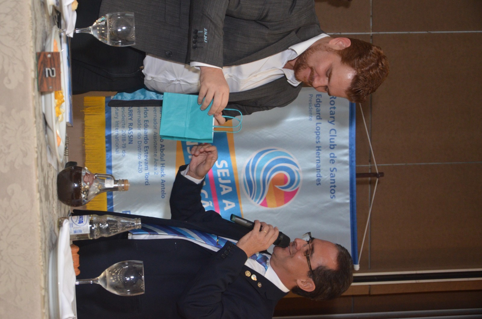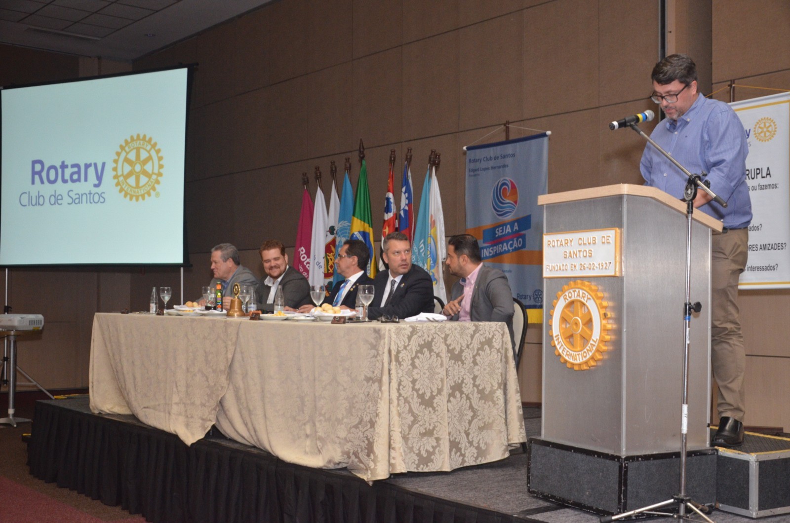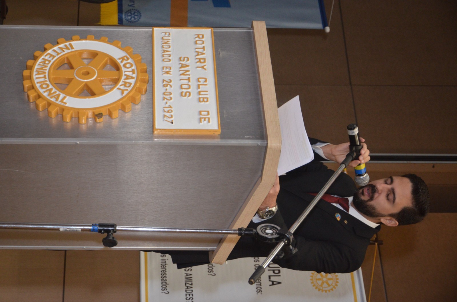 Logo após apresentação, o Companheiro Rodrigo Chacao, do Rotary Club de Praia Grande, falou no Minuto Rotário sobre o Seguro Solidário.