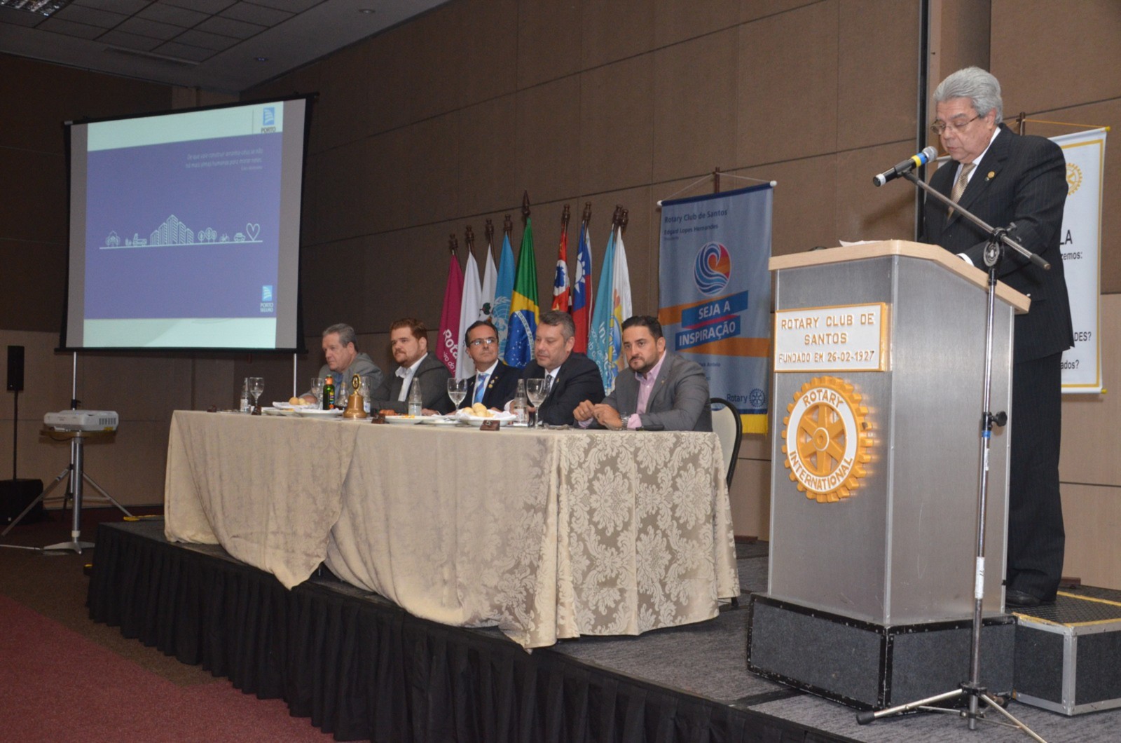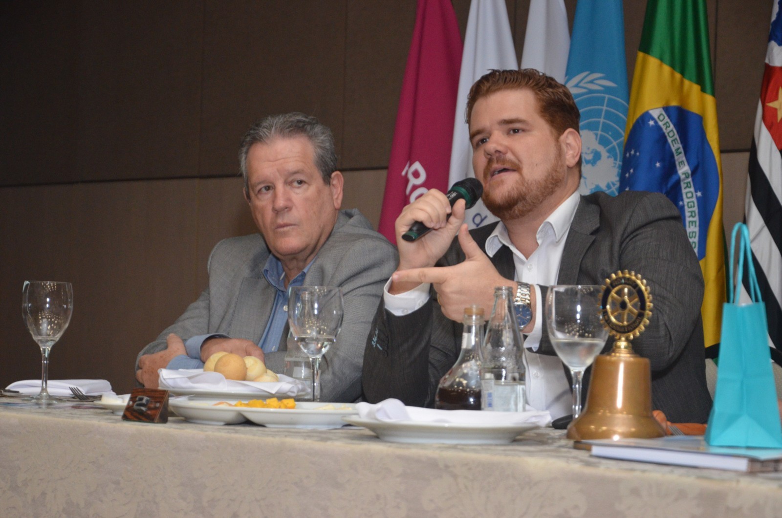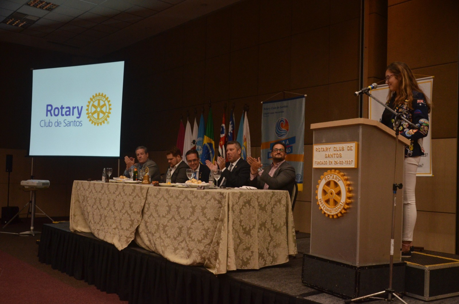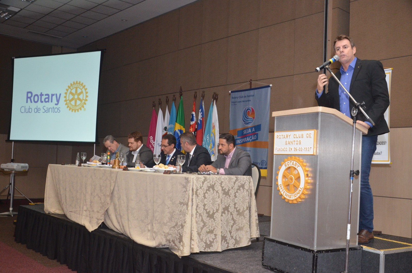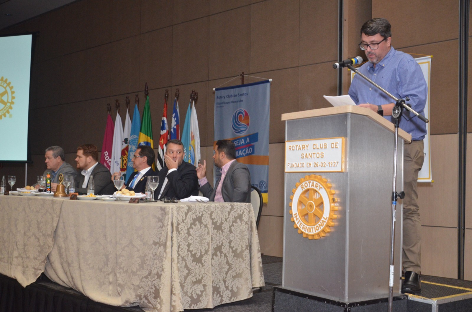 Logo após apresentação, o Companheiro Rodrigo Chacao, do Rotary Club de Praia Grande, falou no Minuto Rotário sobre o Seguro Solidário.