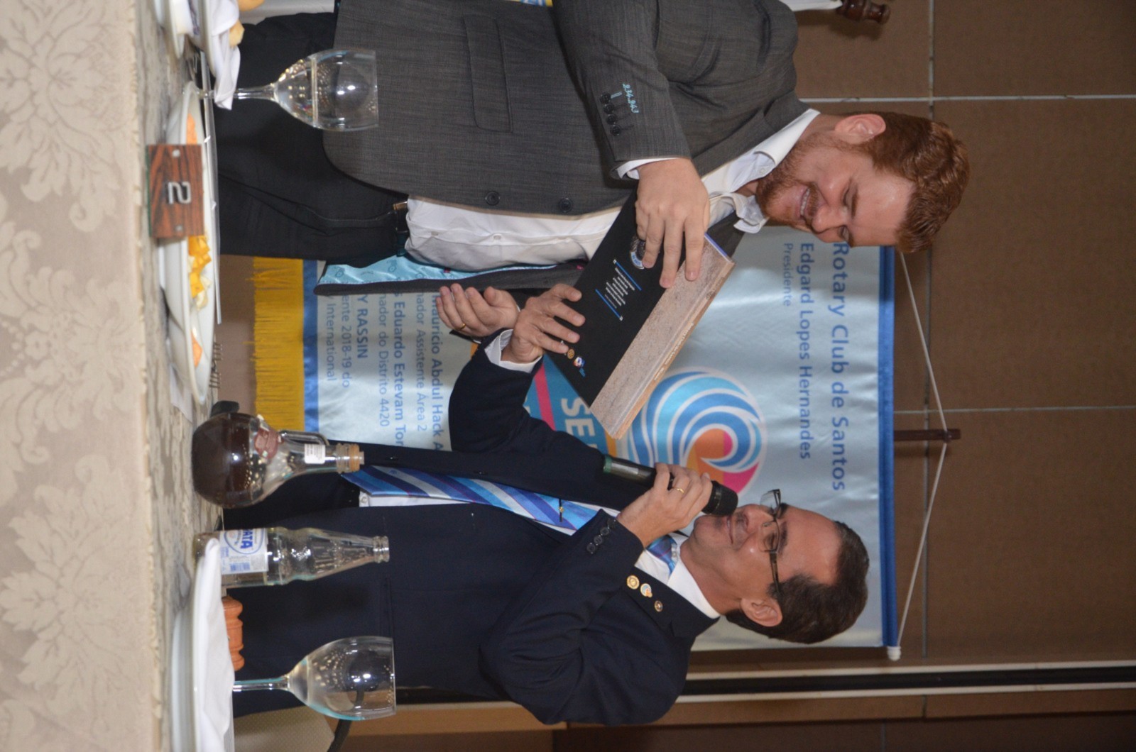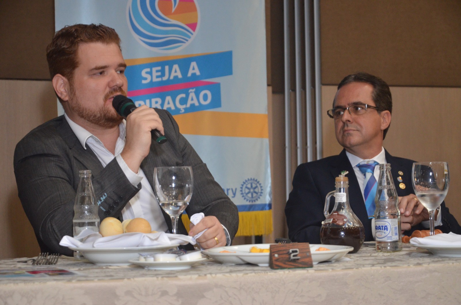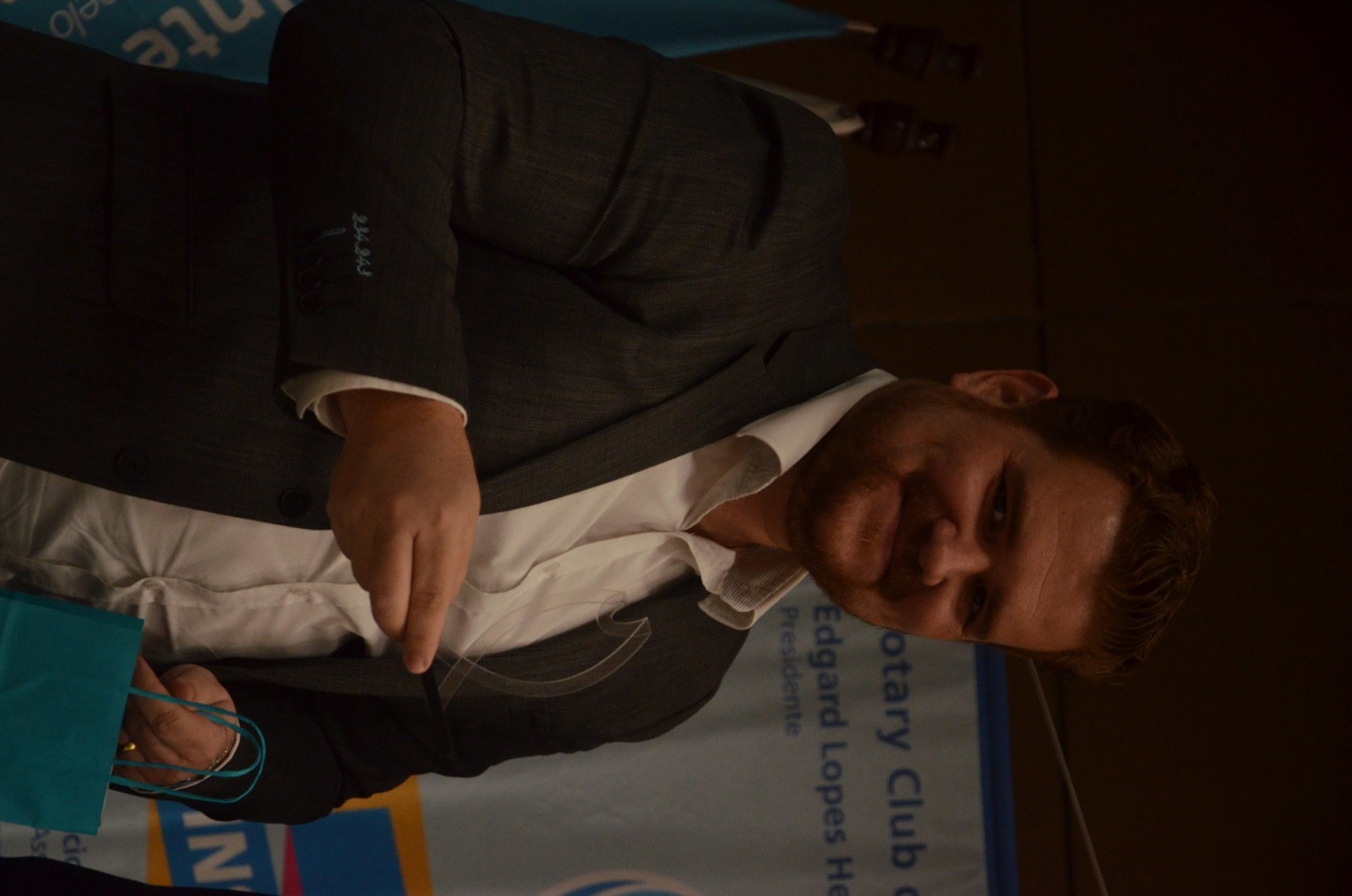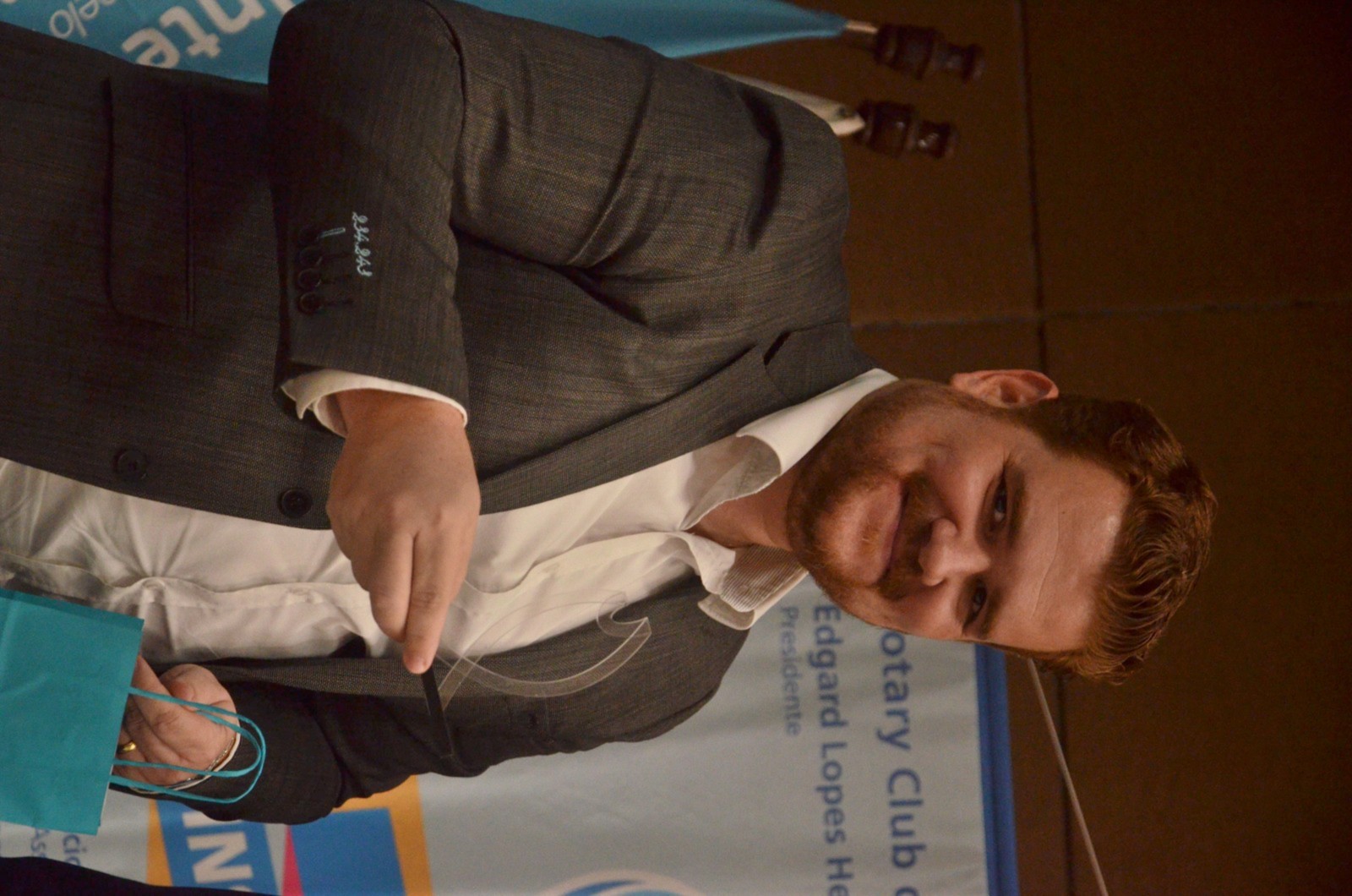 Logo após apresentação, o Companheiro Rodrigo Chacao, do Rotary Club de Praia Grande, falou no Minuto Rotário sobre o Seguro Solidário.