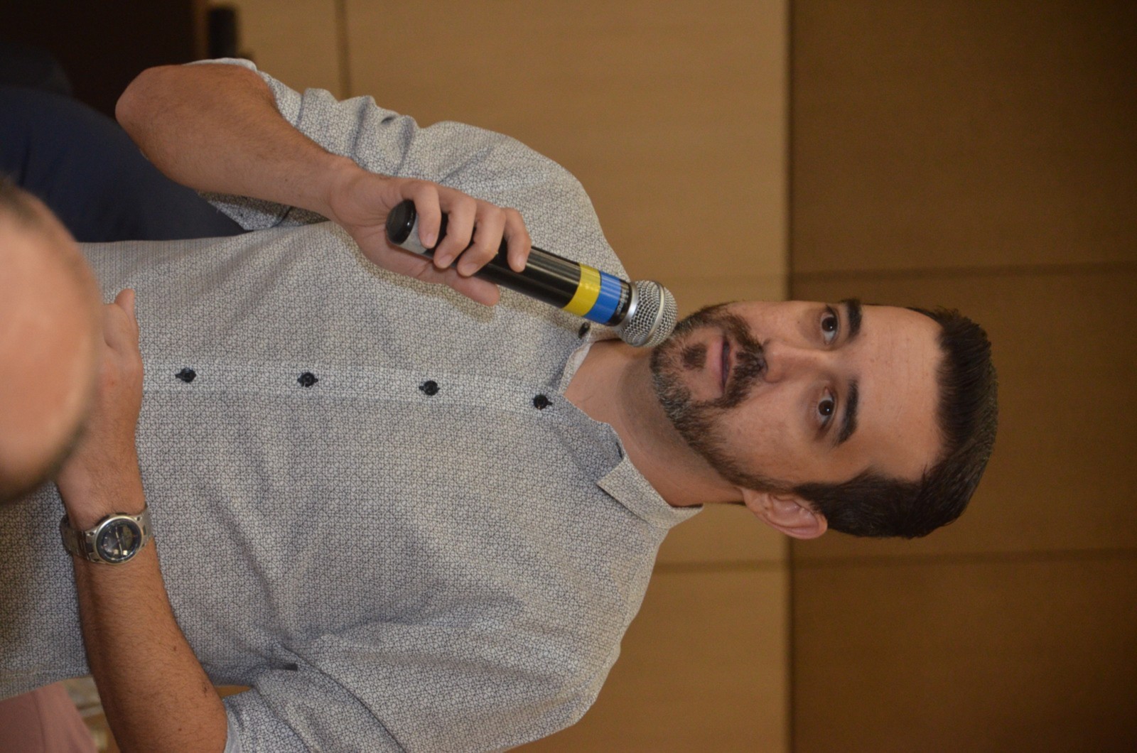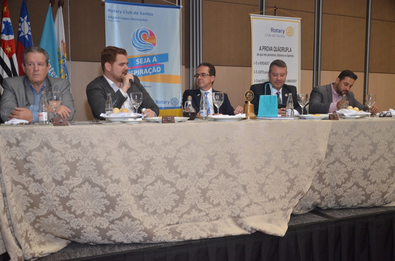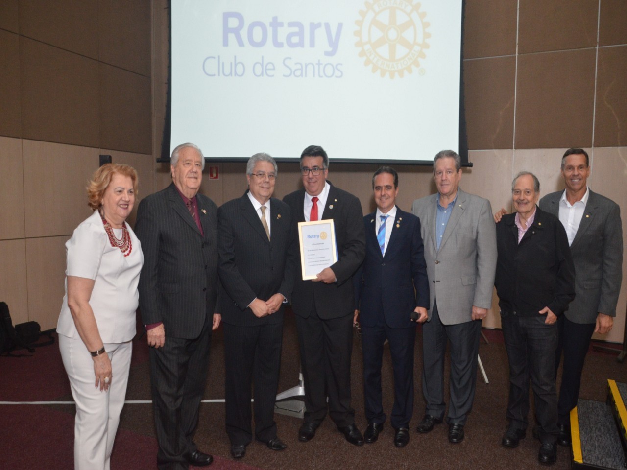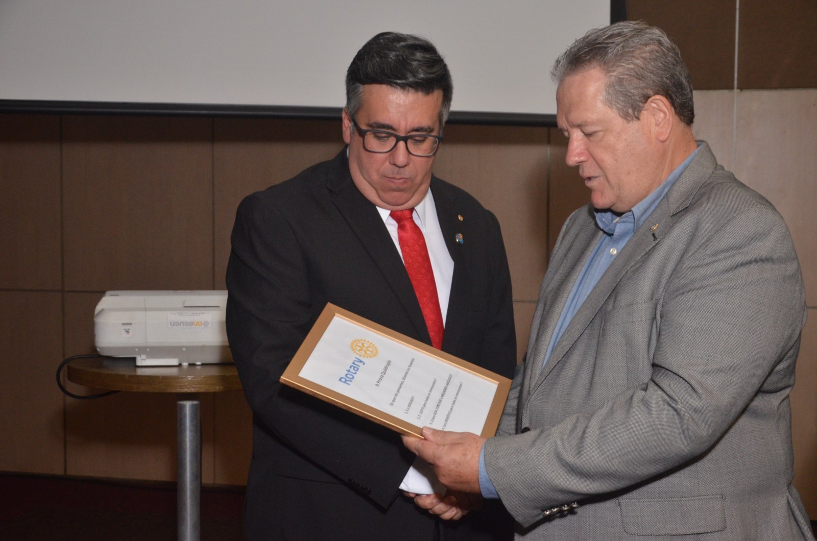 Logo após apresentação, o Companheiro Rodrigo Chacao, do Rotary Club de Praia Grande, falou no Minuto Rotário sobre o Seguro Solidário.