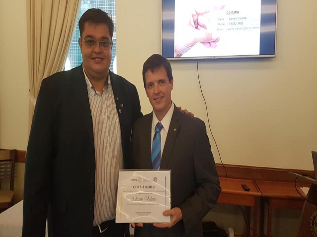 Nesta terça-feira (19), na Cantina di Lucca, em Santos/SP, o Rotary Club de Santos-Porto promoveu a palestra O novo Rotary, ministrada pelo médico Adriano Valente, Governador Eleito 2019-2020 do Distrito 4420 do Rotary International. Na oportunidade, a fisioterapeuta Thatiana Fernandez Marujo Vergara tomou posse como associada do Santos-Porto.