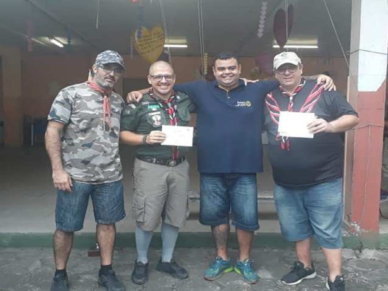 No dia 04 de maio o Rotary Club de Cubatão Jardim Casqueiro representado pelos companheiros Thiago Rodrigues de Carvalho e Norberto Pinho Braz, juntamente com a cônjuge do presidente, Regina Perez de Farias, estiveram na Escola Municipal de Educação Infantil Amazonas, em Cubatão, fazendo a entrega de certificados de participação e agradecimento para os membros do grupo de escoteiros Falcão Negro que trabalharam em parceria com o Rotary Club de Cubatão Jardim Casqueiro na ação Páscoa Solidária no dia 13 de abril.
