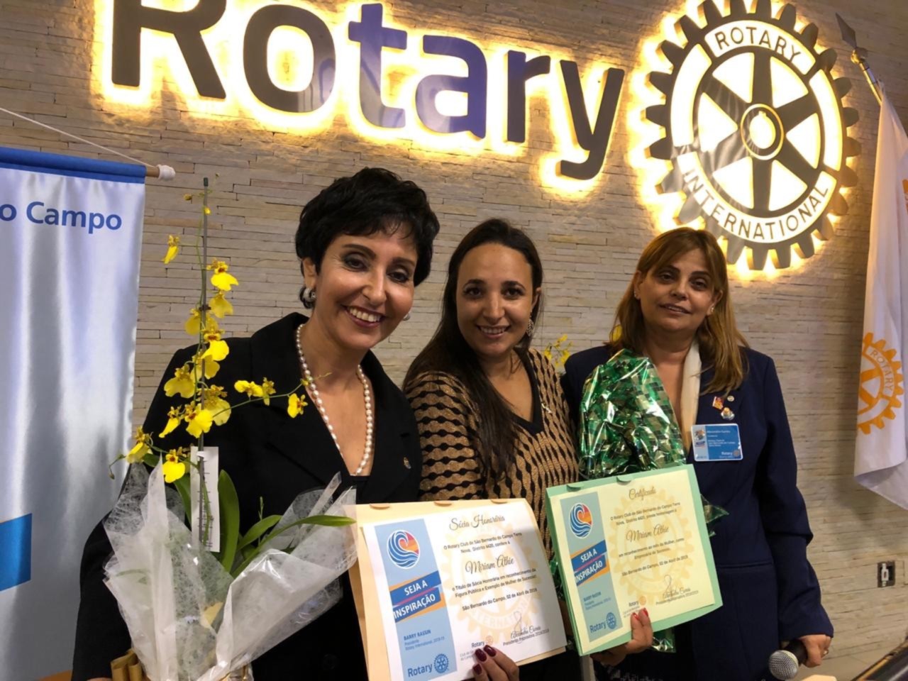 A Presidente Inspiradora Alexandra Corrêa na noite de hoje, deu posse à Companheira Miriam Athie com Sócia Honorária de nosso clube.