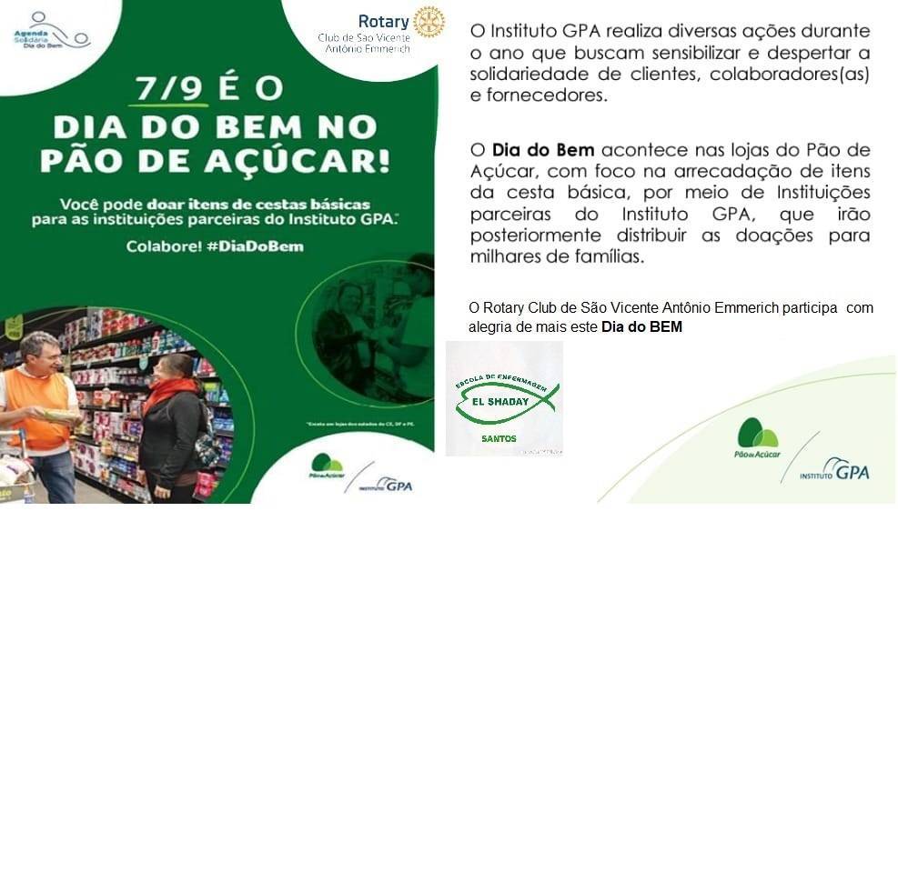 Iremos juntamente com parceiros realizar arracadação de alimentos para instituição de pessoas carentes no Supermercado Pao de Açucar em São Vicente.