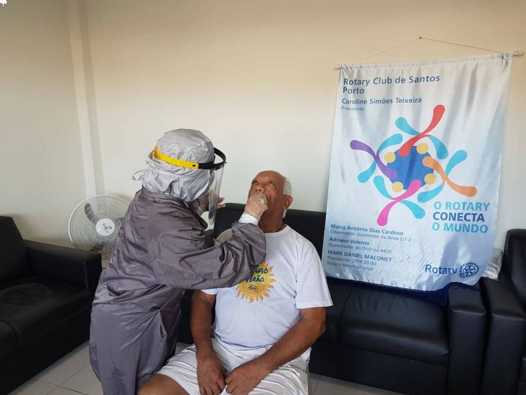 "Foram realizados testes de swab, que são os testes do cotonete, tanto em idosos quanto em funcionários. Todos estão sendo testados para que a gente possa encaminhar os casos positivos para a Secretaria de Saúde tomar os cuidados necessários", explica Caroline Teixeira, presidente do Rotary Club de Santos-Porto e diretora de Saúde da Unisanta, que esteve presente na ação.