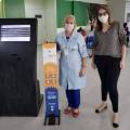 Entrega de totens de alcóol em gel para unidades de saúde em Santos