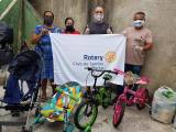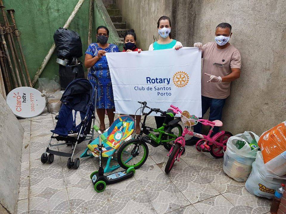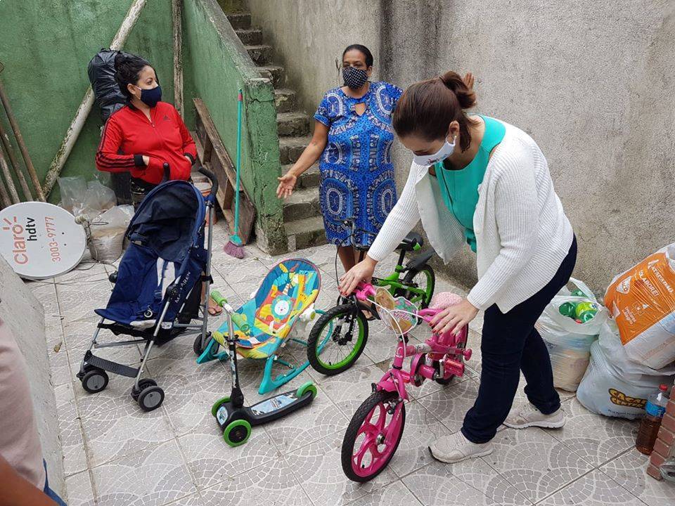 Nesta quinta-feira (09/07), o projeto piloto foi realizado com doações de bicicletas, patinete, carrinho de bebê e outros acessórios para famílias do bairro Jockey Club, em São Vicente/SP.